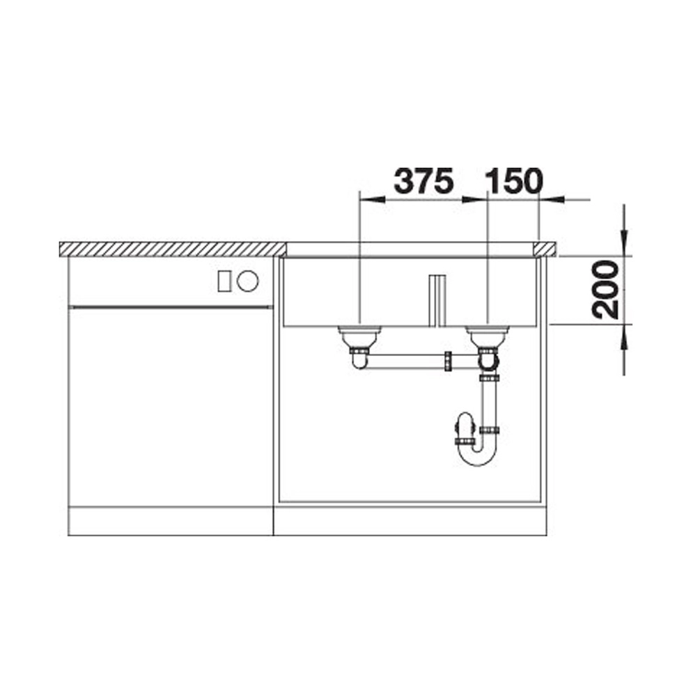 Ablaufanschlüsse für Kombinationen aus zwei Einzelbecken bitteseparat bestellen.