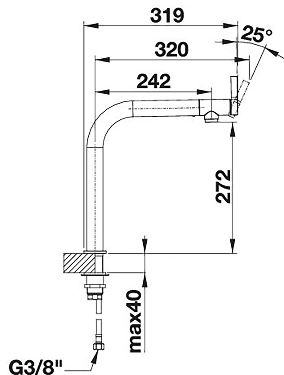 Ergonomischer Bedienhebel zur Frontsteuerung. Konsequent geradlinige Gestaltung. Auslauf mit