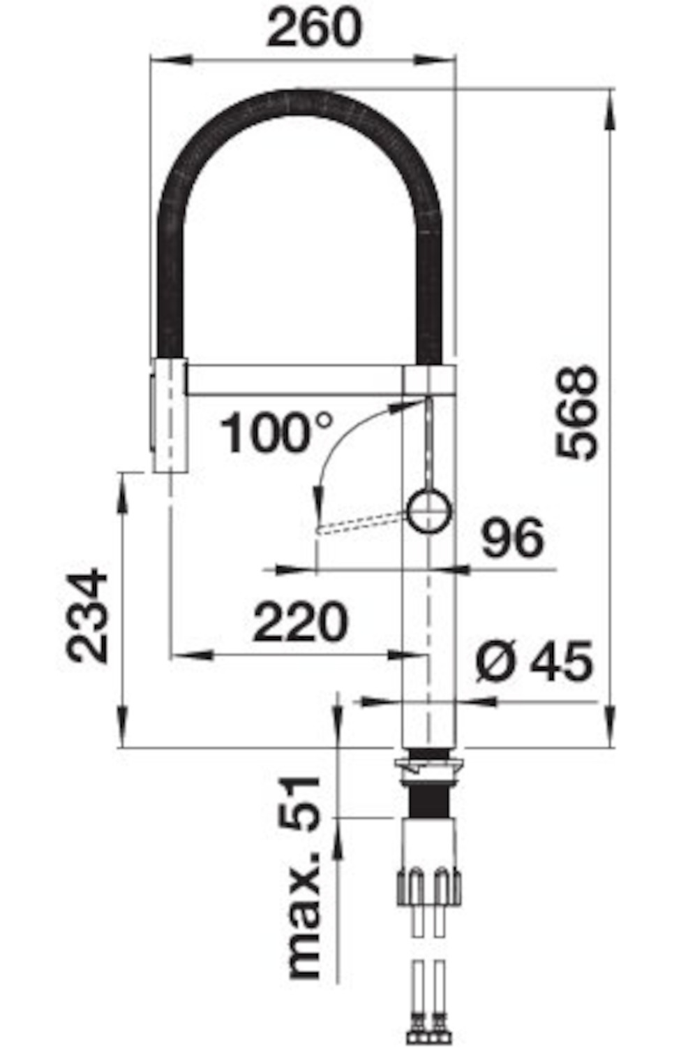 Hoher Bogen und flexibler Metallschlauch für optimalen Bewegungsspielraum.