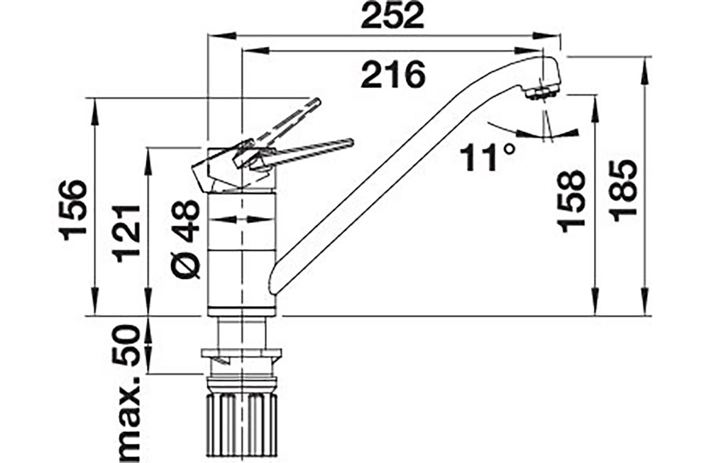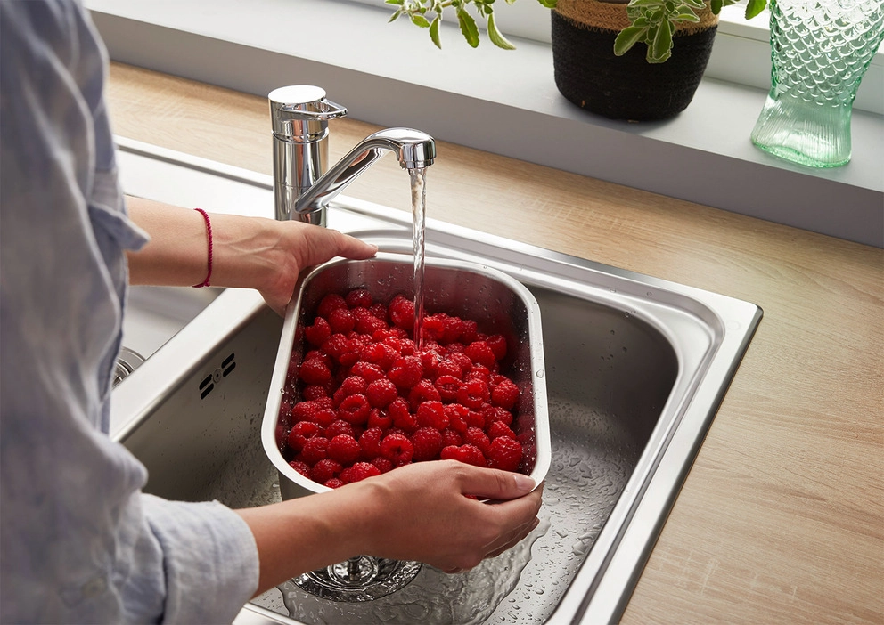 Kopfhebelarmatur für flexible Planung und leichte Bedienung. Besonders geeignet für kompakte Spülen und Becken.