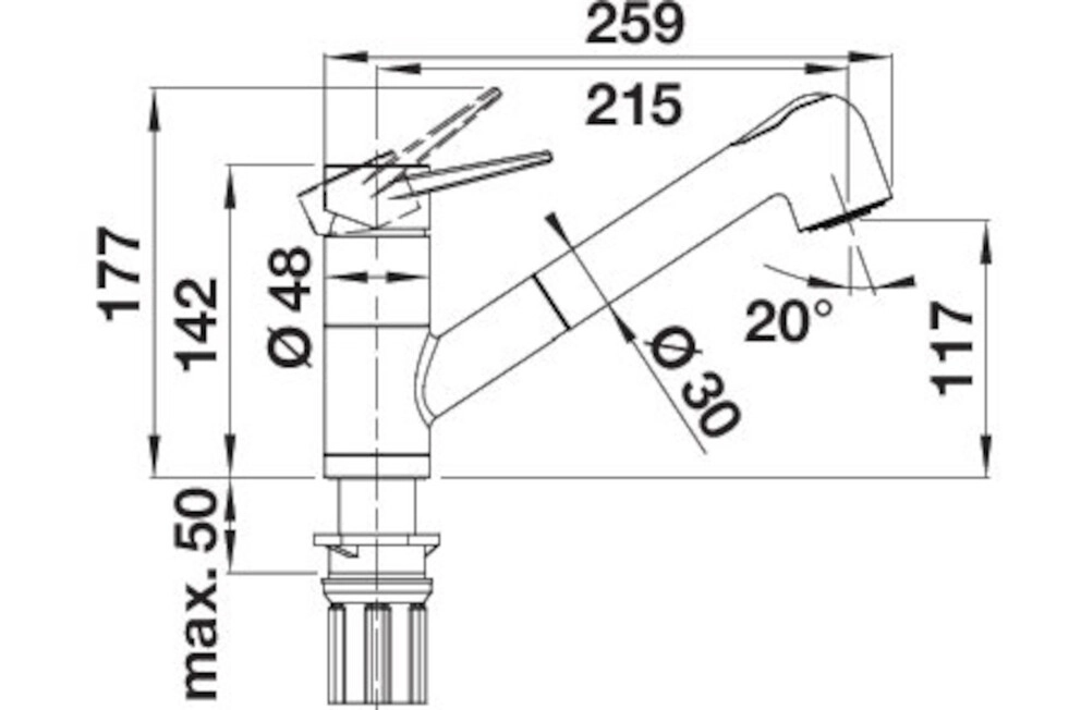Besonders geeignet für kompakte Spülen und Becken. Mindestabstand zwischen Spüle und Fensterflügel 2,5 cm.