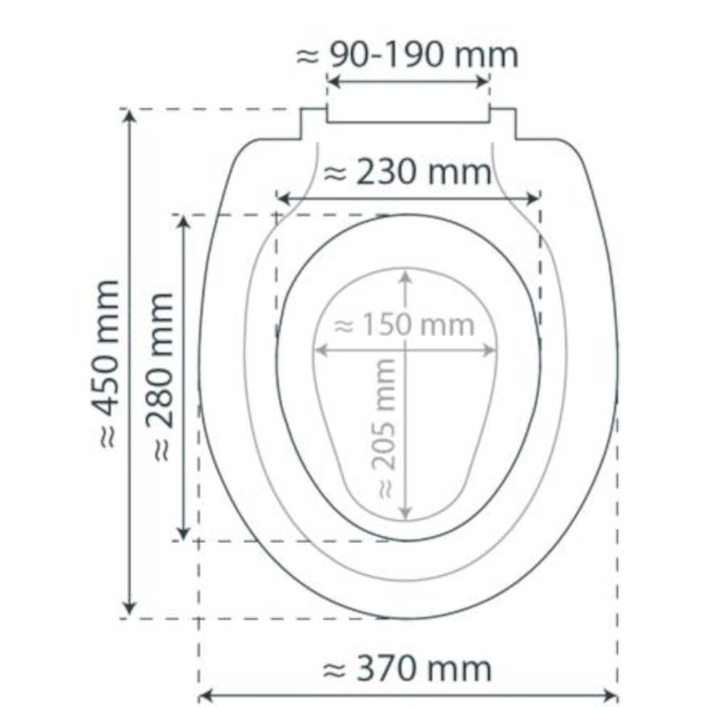 UNIVERSALE FORM: Dank universellem Standardmaß und O-Form passt der WC-Sitz auf handelsübliche Hänge- und Stand WC-Becken (Details zu der Bemaßung in technischer Zeichnung).