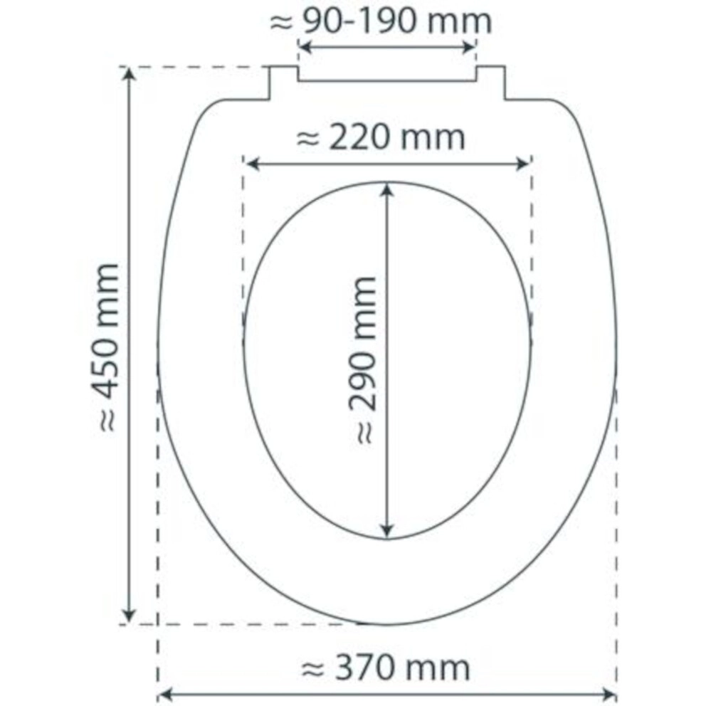 UNIVERSALE FORM: Dank universellem Standardmaß und O-Form passt der WC-Sitz auf handelsübliche Hänge- und Stand WC-Becken (Details zu der Bemaßung in technischer Zeichnung).