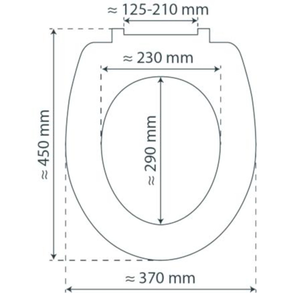 UNIVERSALE FORM: Dank universellem Standardmaß und O-Form passt der WC-Sitz auf handelsübliche Hänge- und Stand WC-Becken (Details zu der Bemaßung in technischer Zeichnung).