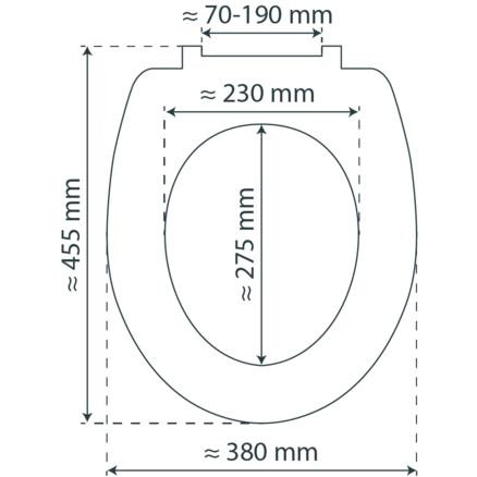 UNIVERSALE FORM: Dank universellem Standardmaß und O-Form passt der WC-Sitz auf handelsübliche Hänge- und Stand WC-Becken (Details zu der Bemaßung in technischer Zeichnung).