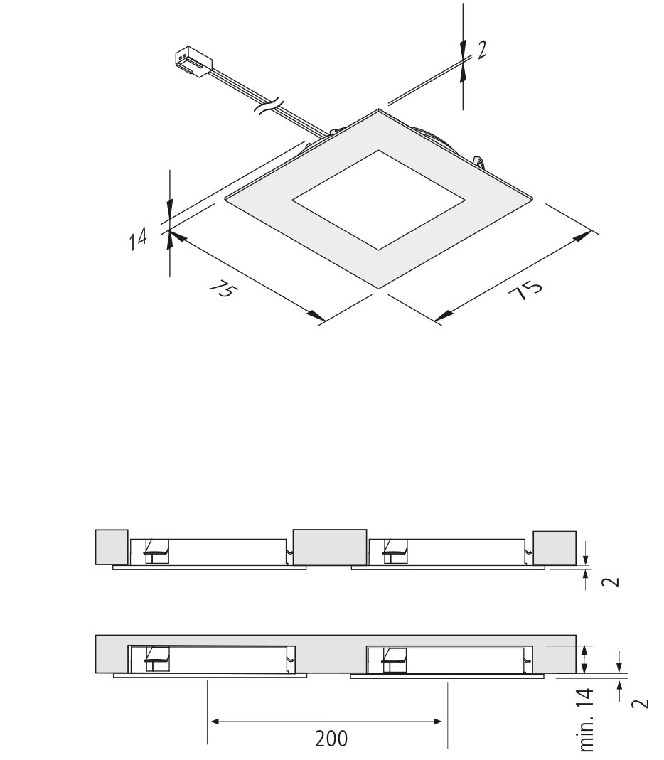 flächenbündige Montage in 16 mm Platten;