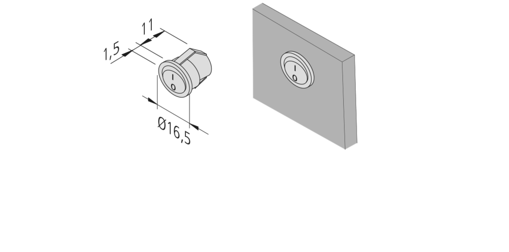 Einbau-Schalter SEM rund schwarz mit 0+I bedruckt,