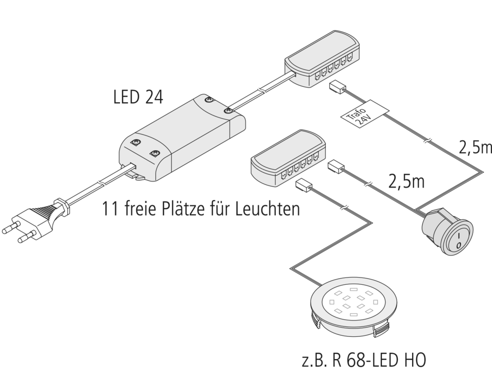 • Schaltleitung 2,5 m mit 11fach-Verteiler LED24