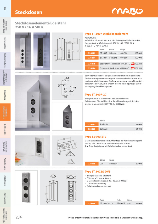 Energie-Ecksäule 288 mm mit 2 Stück Steckdosen