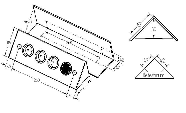 • 3 Steckdosen 240 V / 16 A / 3500 Watt, 1 Schalter