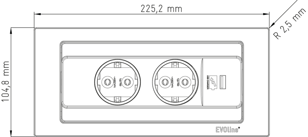 2× VDE-Steckdose, 0°, 16 A, mit Berührungsschutz.