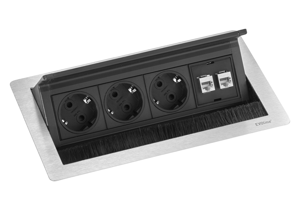 schwarz, bestückt mit: 3 x VDE-Steckdose. Zum Einbau in