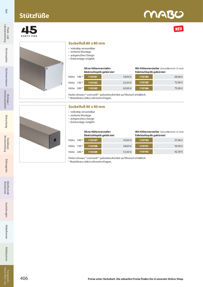 FORTY FIVE Sockelfuß 80 Höhe 150 mm Edelstahloptik geb. mit Höhenverst.
