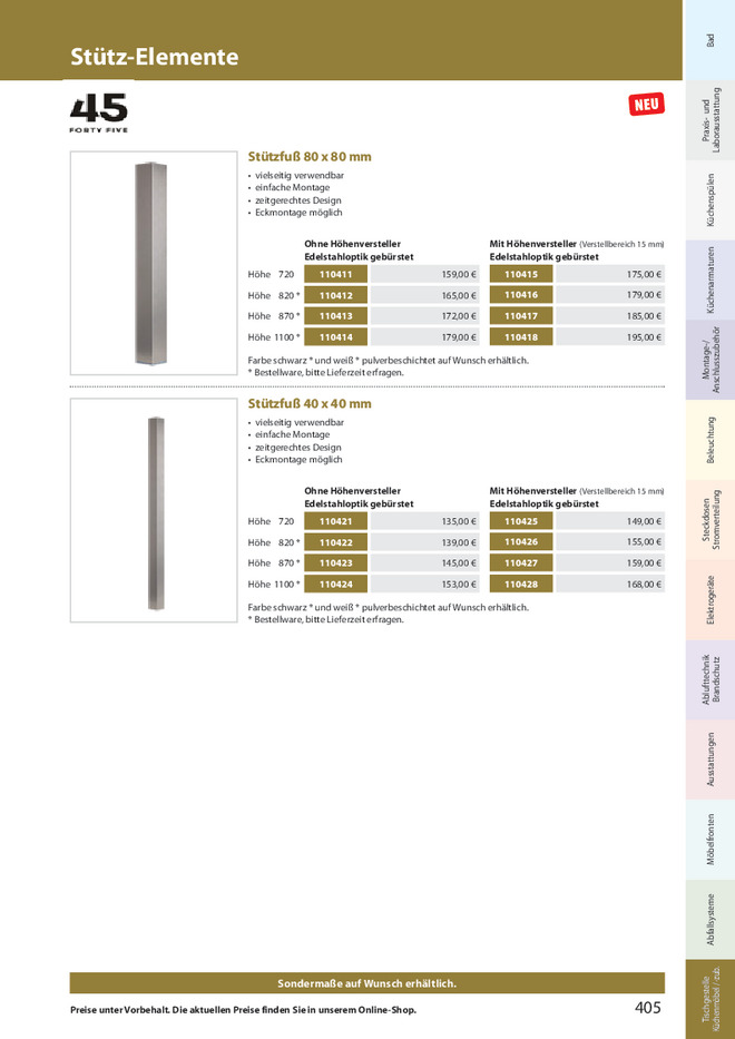 FORTY FIVE Stützfuß 80 Höhe 720 mm Edelstahloptik geb. mit Höhenverst.
