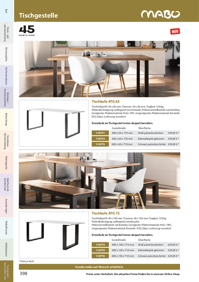 Tischfußprofil: 30 x 60 mm, Traverse: 30 x 60 mm, Traglast: 120 kg,