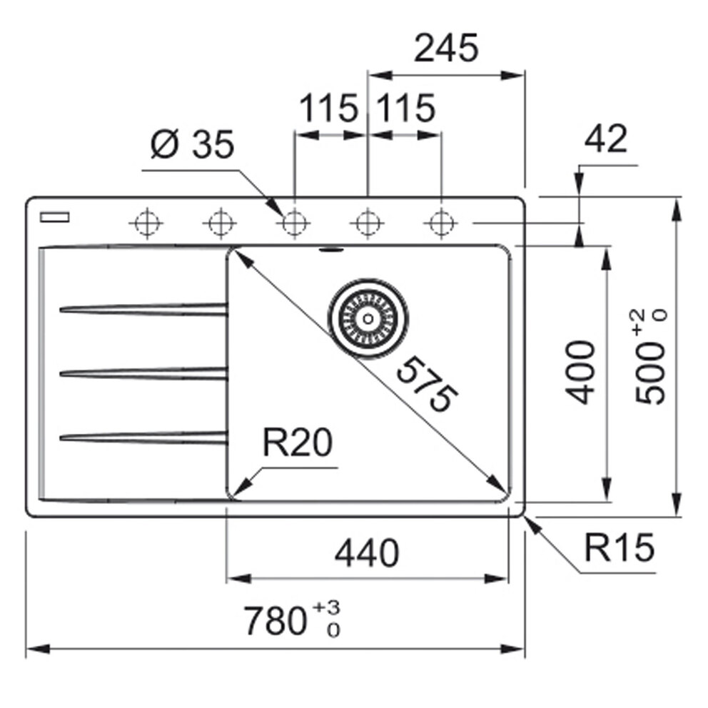 Beckenaußenmaß: 780 x 500 mm