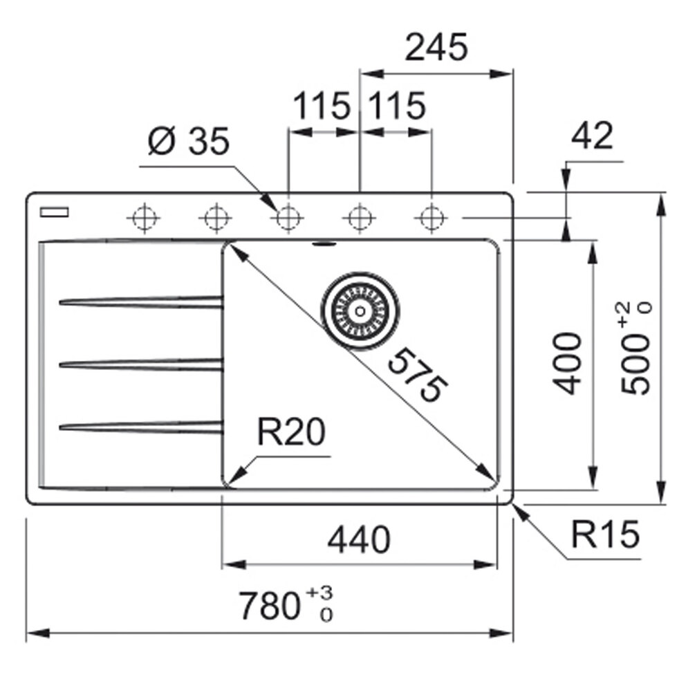Beckenaußenmaß: 780 x 500 mm