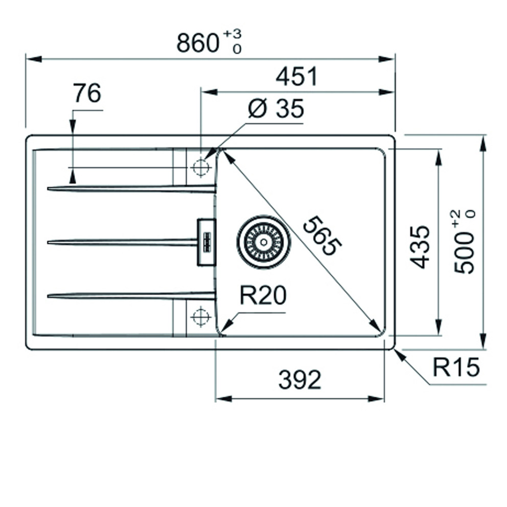Beckenaußenmaß: 860 x 500 mm,