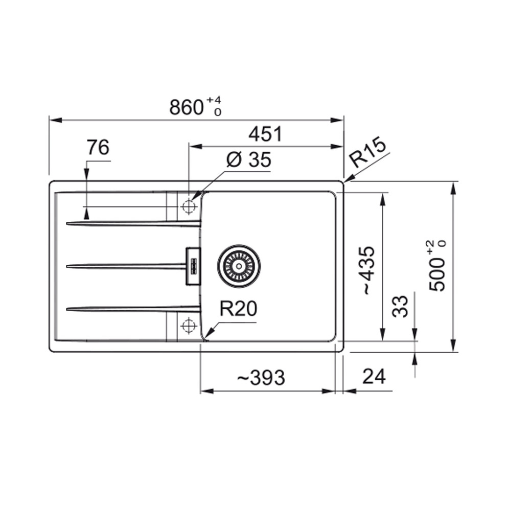 Spülenmaß: 860 x 500 mm
