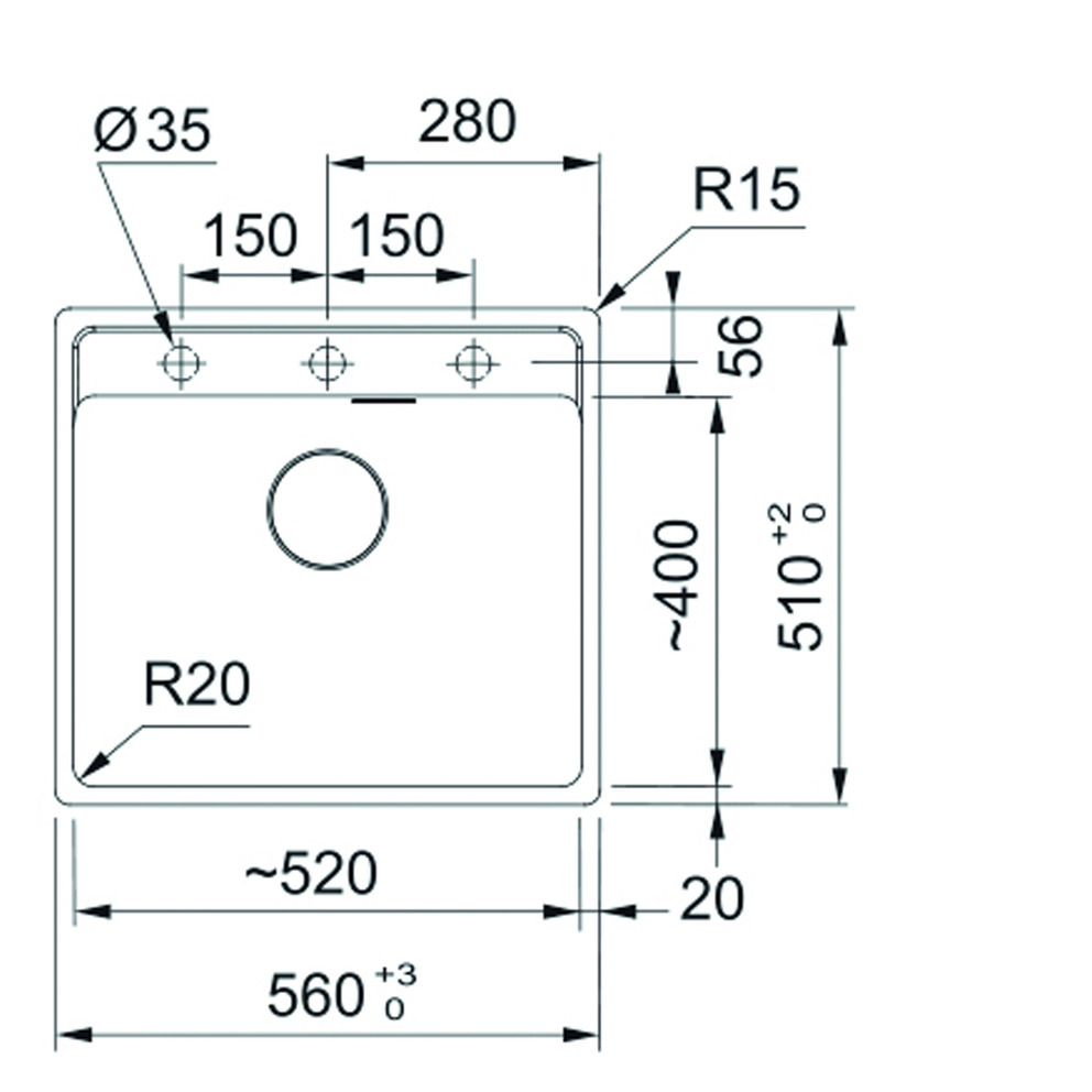 Beckenaußenmaß: 560 x 510 mm