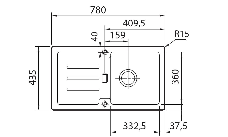 Beckenaußenmaß: 780 x 435 mm