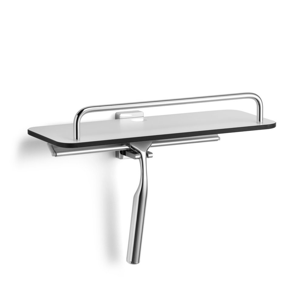 Dusch Konsolemit GlasabzieherAblage aus Kompaktschichtstoff (HPL)in weiß, mit schwarzem KernBreite: 300 mmTiefe: 130 mmHöhe: 225 mm