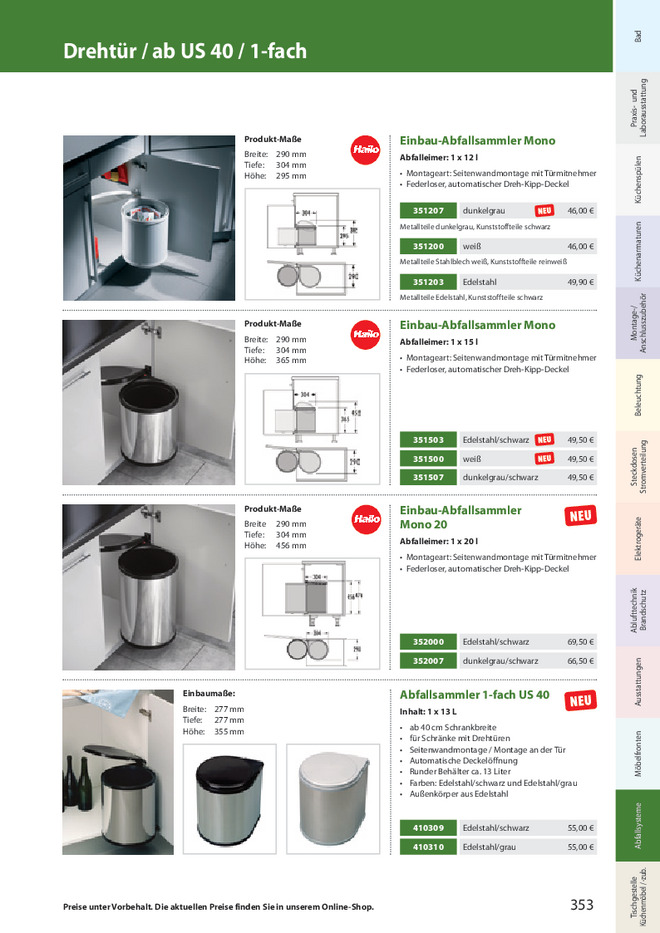 HAILO Abfallsammler Mono 20 Liter dunkelgrau/schwarz