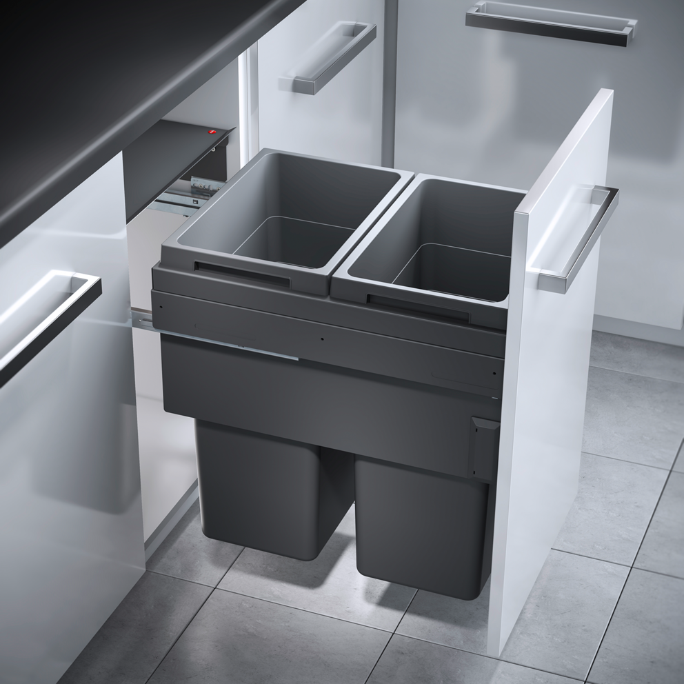 Abfalleimer: 2 x 38 l, Gesamtvolumen 76 l, dunkelgrau