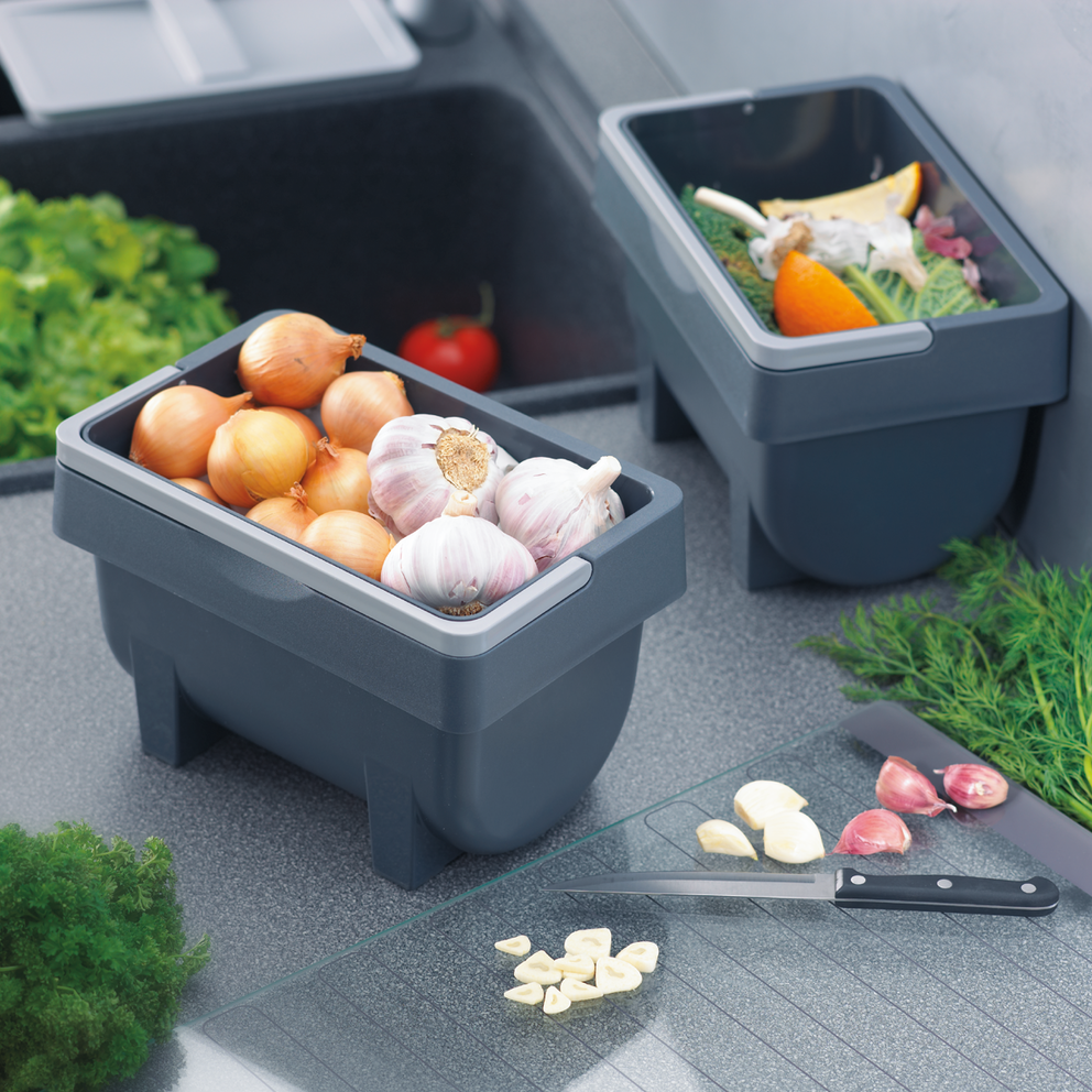 Als Vorratsbehälter, Kompostsammler oder Utensiliendepot,