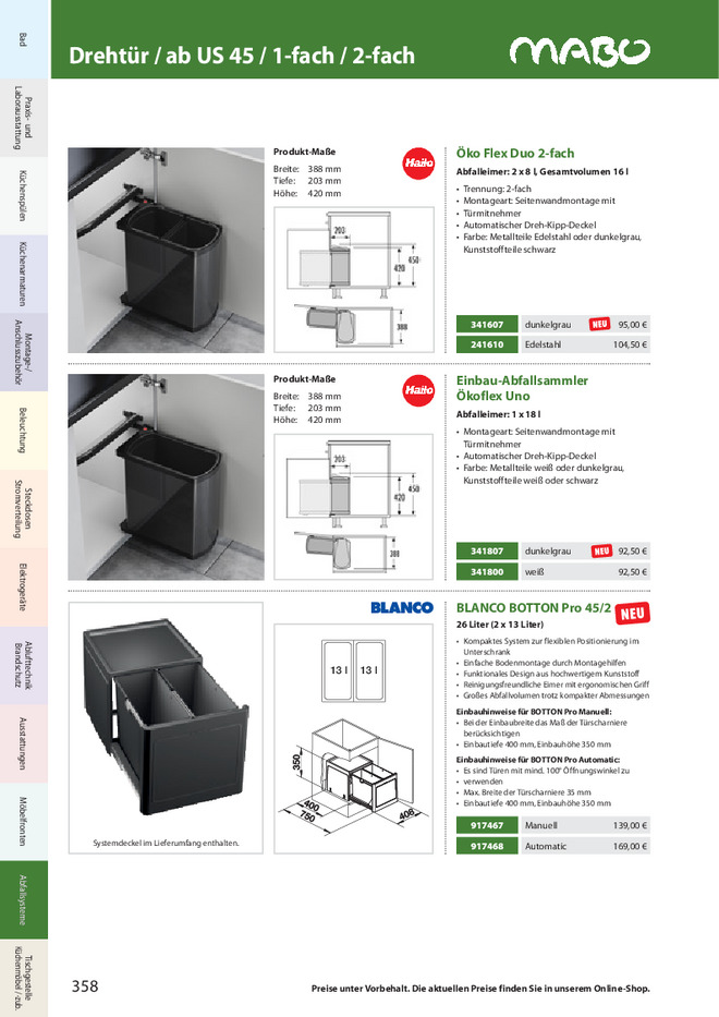 Abfalleimer: 2 x 8 l, Gesamtvolumen 16 l