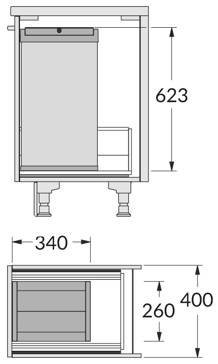 Einsatz für Schränke ab 400 mm Breite mit Frontauszug.