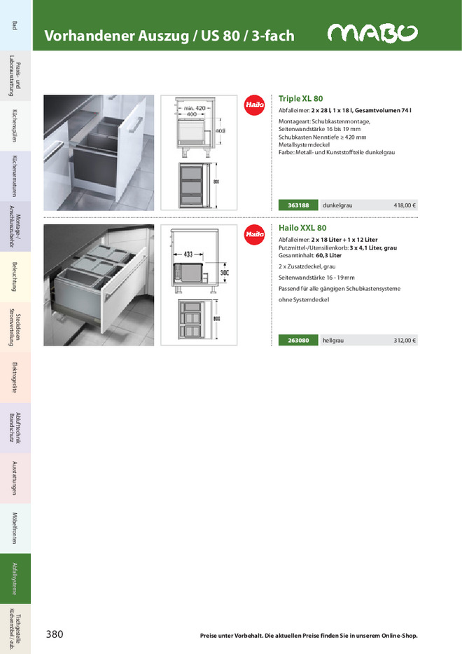 Abfalleimer: 2 x 18 Liter + 1 x 12 Liter