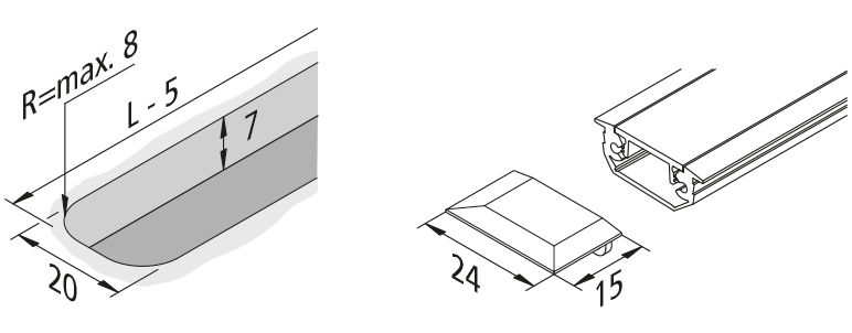 Einfräsprofil 24mm alu eloxiert inkl. Abdeckprofil 15mm