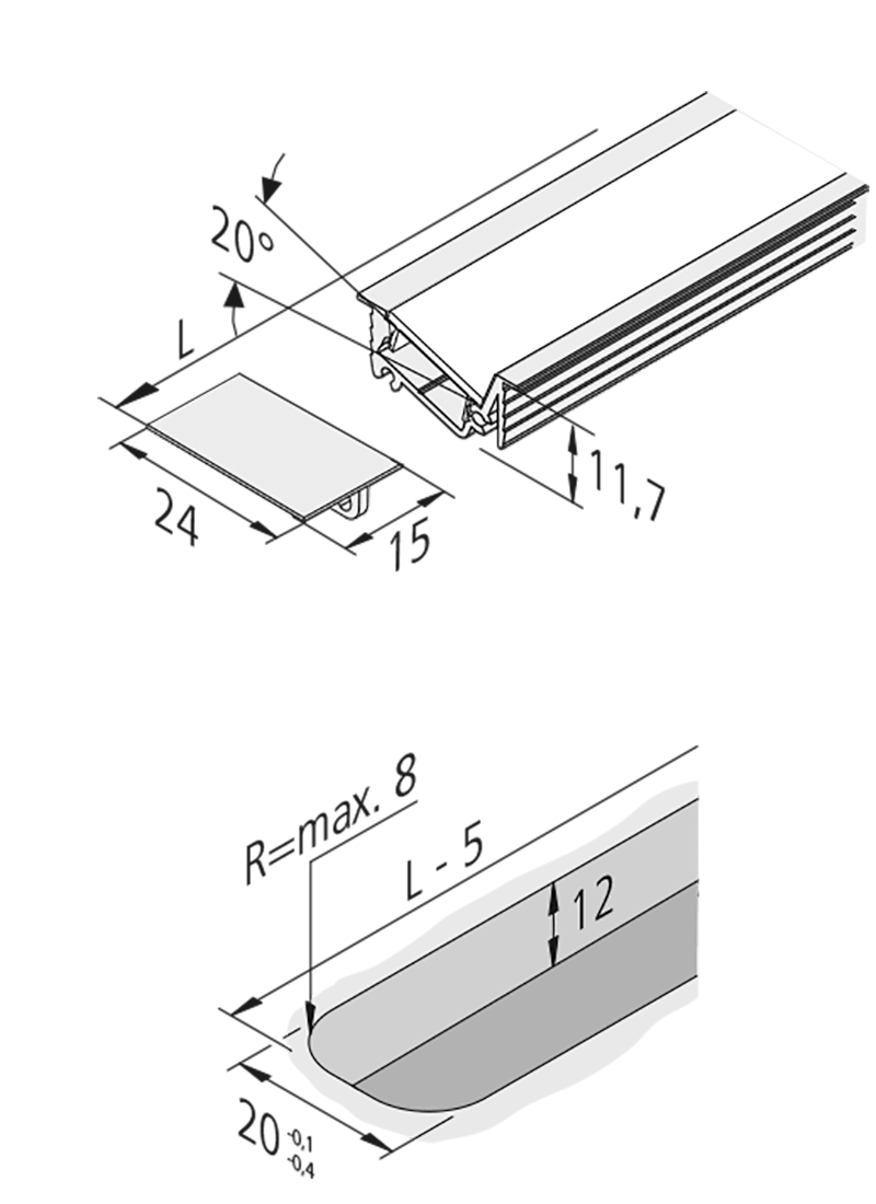 HERA Einfräsprofil I 24 2m Alu mit Abdeckprofil 15mm matt