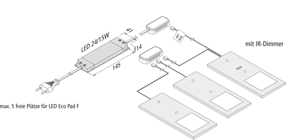 inkl. Trafo 12W, Anschlussleitung 2,4m mit LED 24-Stecker, inkl. berührungslosem IR-Dimmer