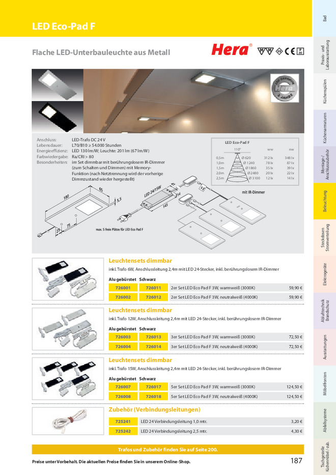 inkl. Trafo 12W, Anschlussleitung 2,4m mit LED 24-Stecker, inkl. berührungslosem IR-Dimmer