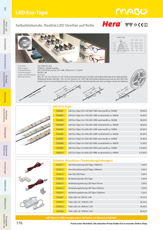 Energieeffizienz: LED 140 lm/W; Leuchte: 234 / 468 / 936 /1870 lm/m (117 lm/W)