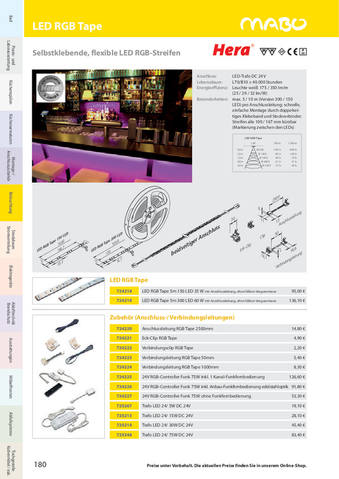 Energieeffizienz: Leuchte weiß: 175 / 350 lm/m