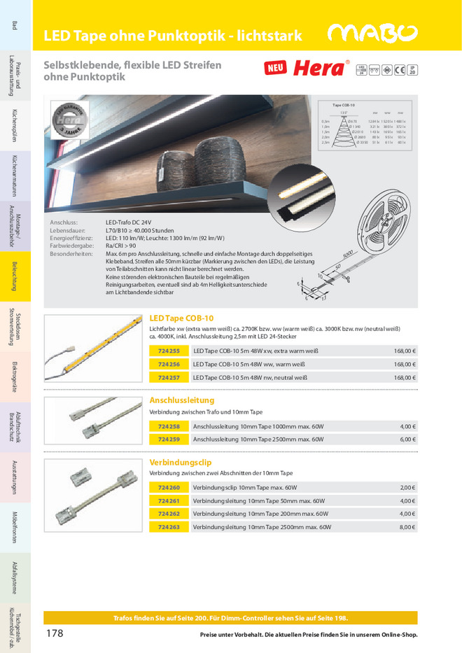 HERA LED Tape COB-10 5m 48W nw 4000K neutral weiß