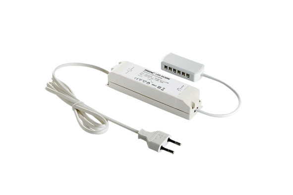 Elektronischer Sicherheitstransformator 24V DC, Netzanschlussleitung 2m mit Eurostecker, 12-fach Verteiler,