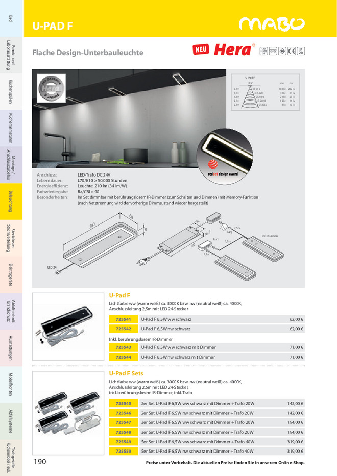 Besonderheiten: Im Set dimmbar mit berührungslosem IR-Dimmer (zum Schalten und Dimmen)