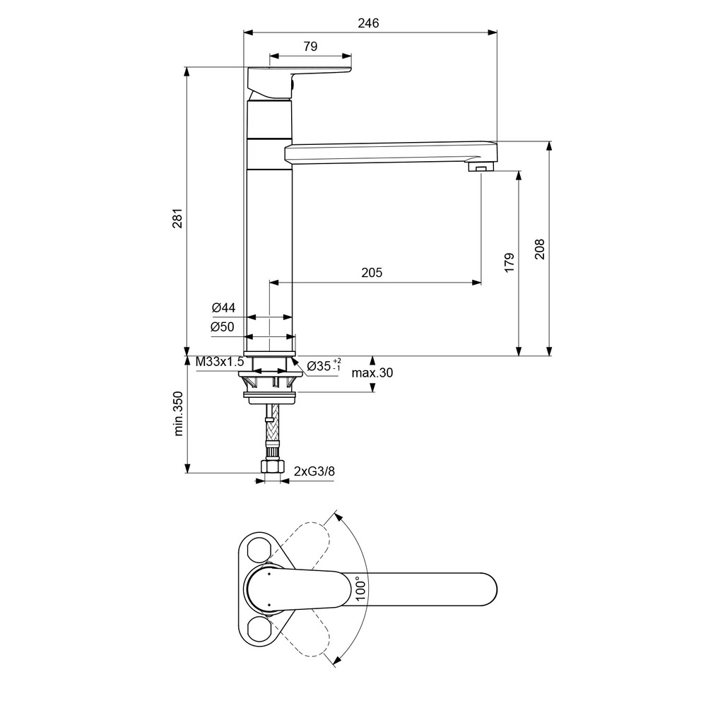 • Ausladung 205 mm. Auslaufhöhe 179 mm