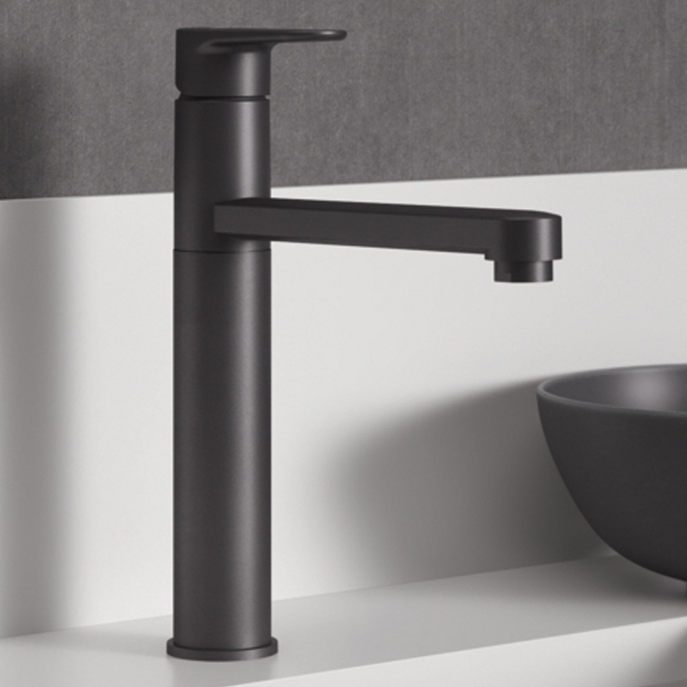 • Flexible Anschlussschläuche G3/8. Bedienungshebel aus Metall mit Rot-/Blau-Markierung.