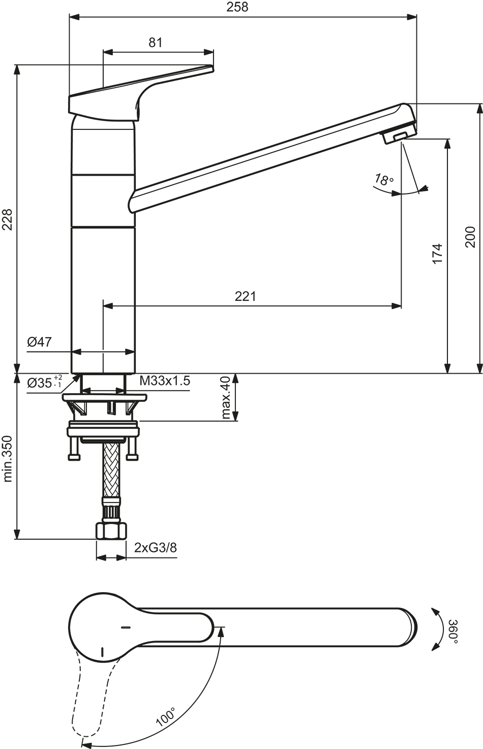 • Ausladung: 221 mm, Auslaufhöhe: 174 mm