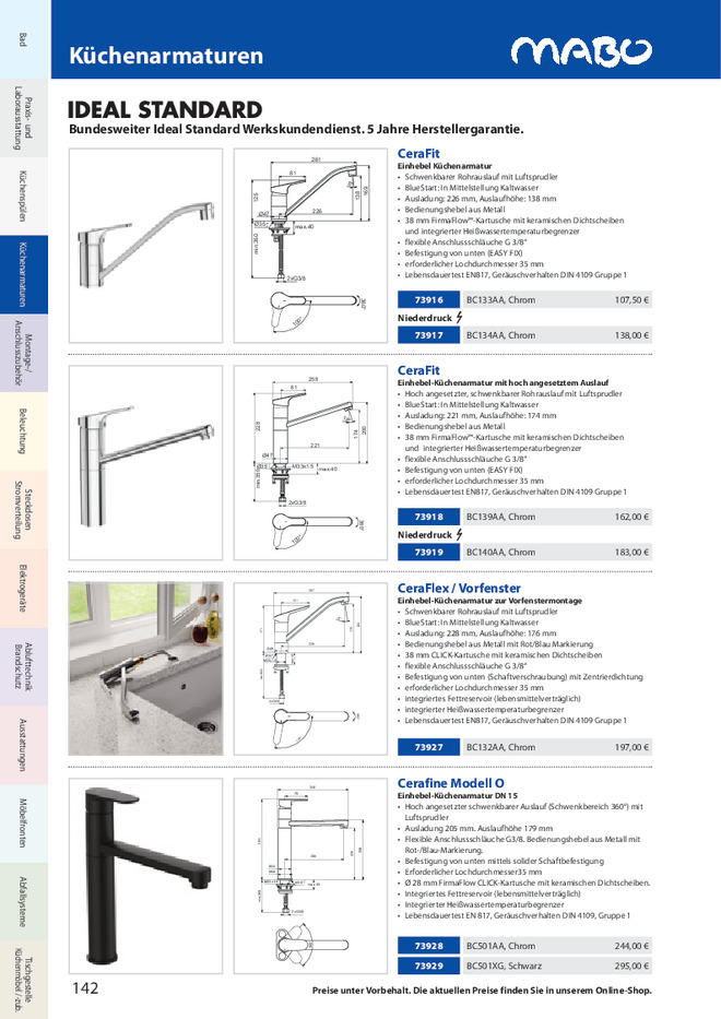 • Ausladung: 221 mm, Auslaufhöhe: 174 mm