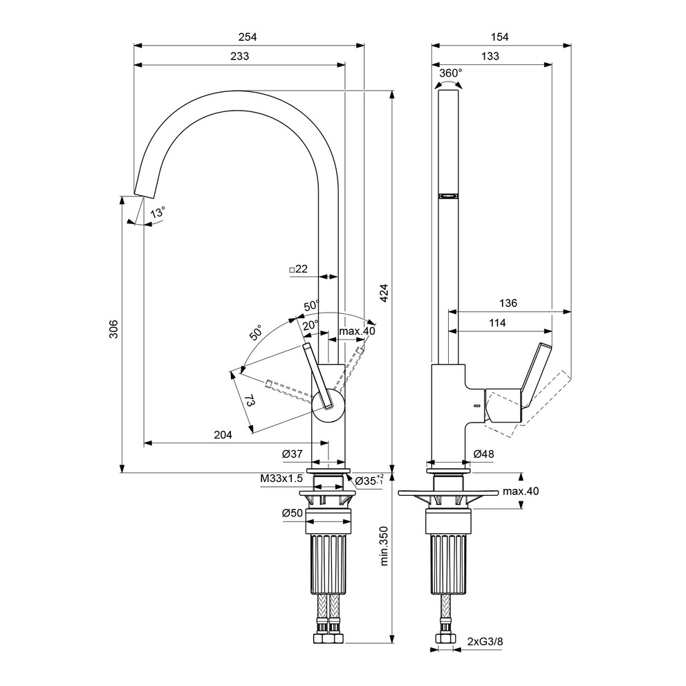 IDEALSTANDARD Gusto Küchenarmatur eckiger Auslauf, Silver Storm