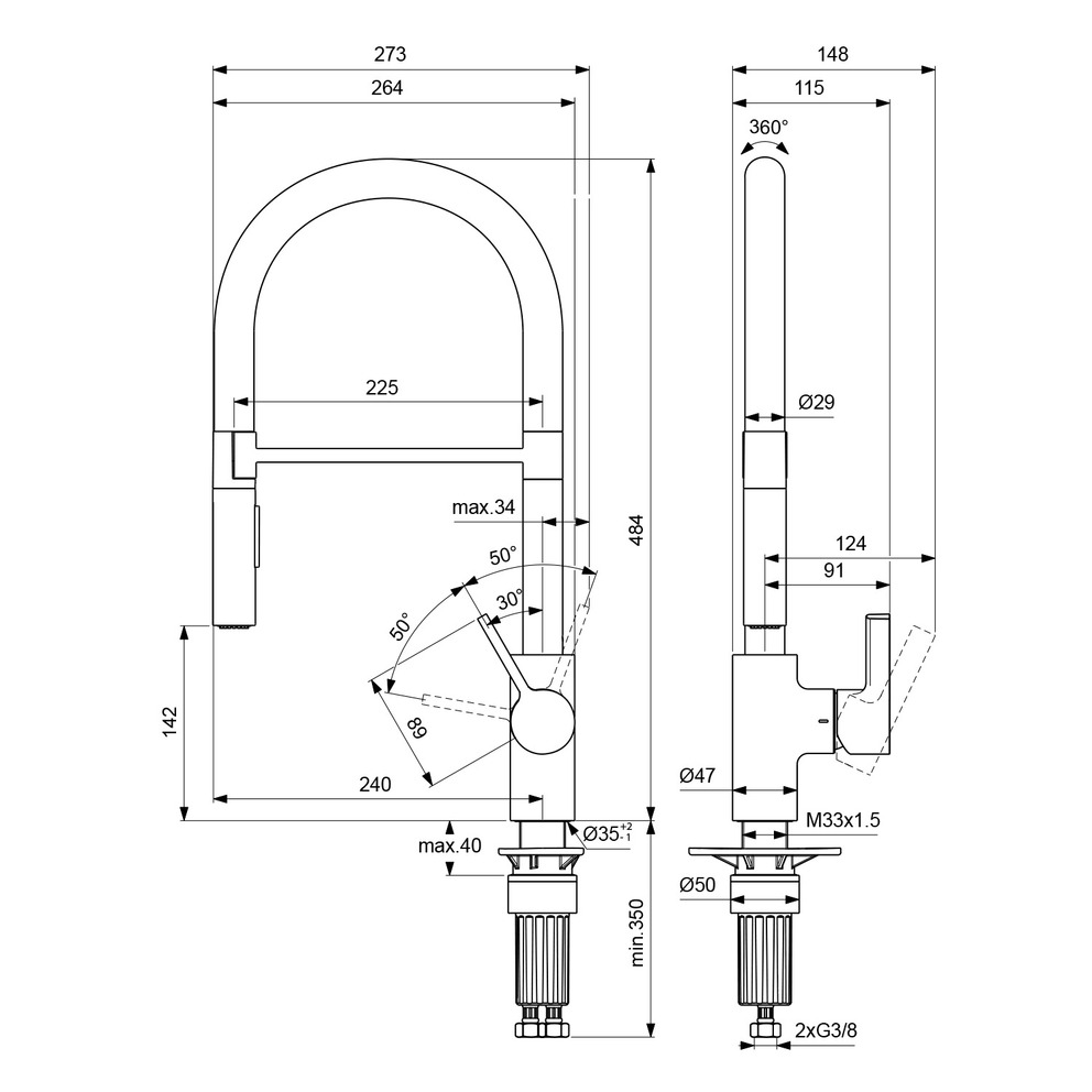 Küchenarmatur Semi-Pro mit 2-Funktions-Handbrause