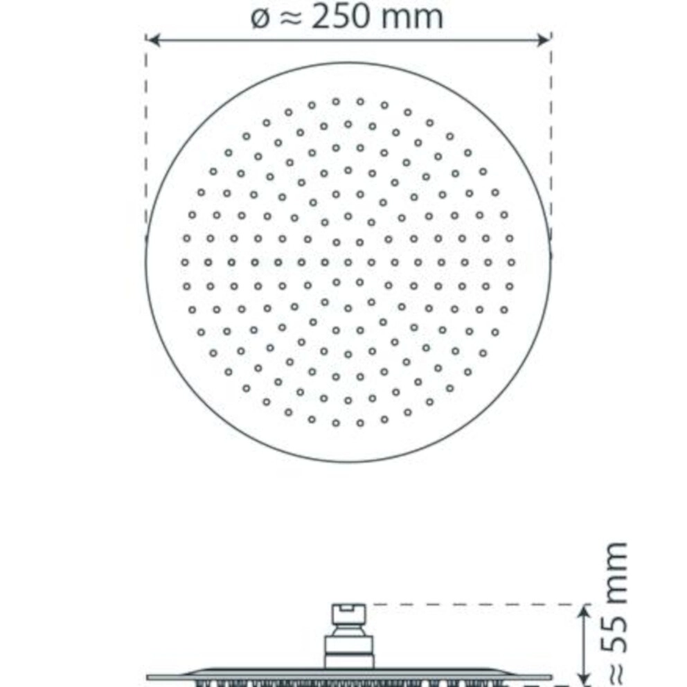 Die sehr flache Ausführung verhindert die Ansammlung von Wasserrückständen innerhalb der Kopfbrause