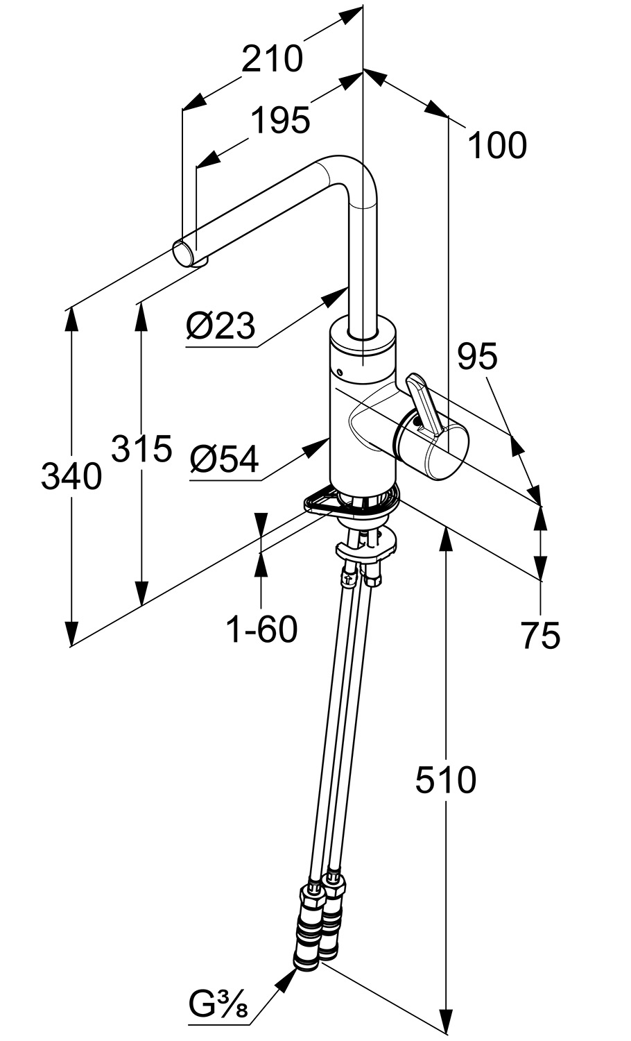 flexible Anschlüsse G 3/8, Geräuschklasse I