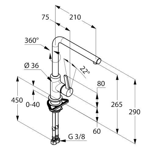 herausziehbarer Auslauf,geschlossener Hebel, Einlochmontage,
